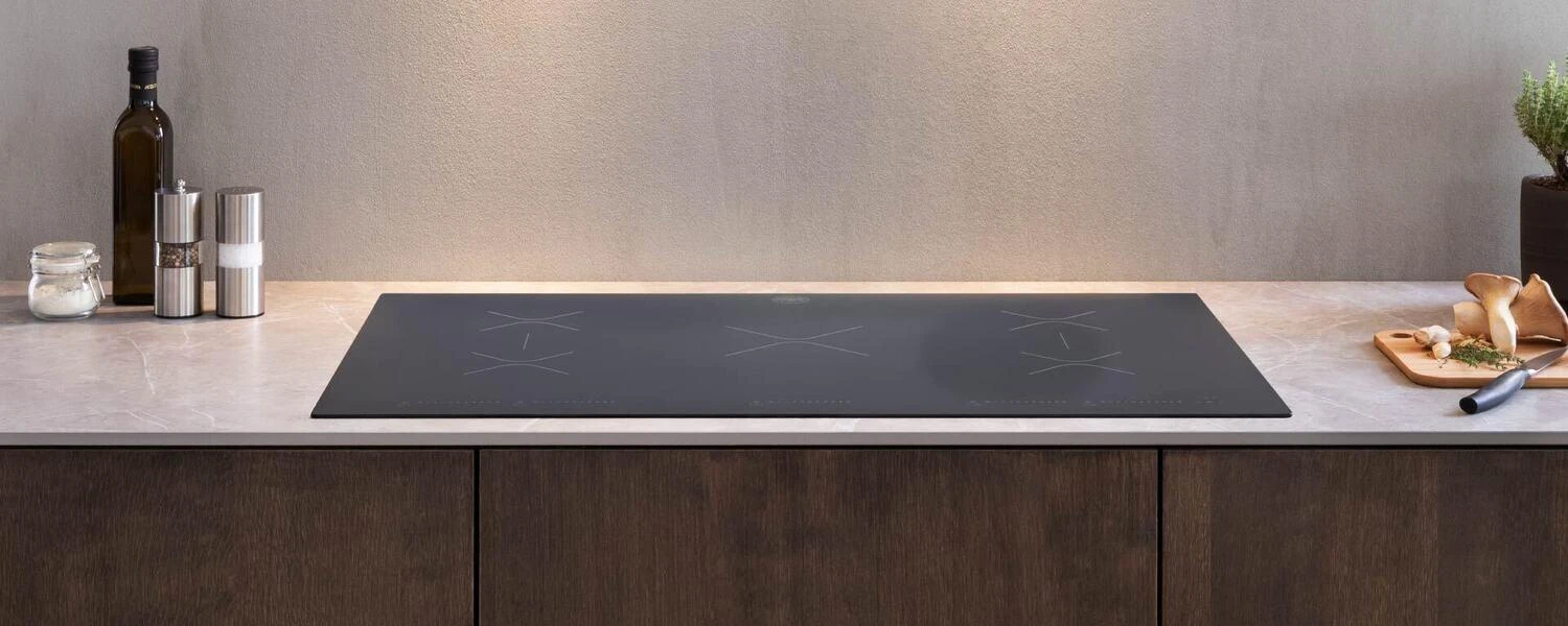 Bertazzoni touch-control induction cooktops represent the fastest and most energy-efficient way to cook. With total output of up to 11100 Watts and booster function, full power is available instantly and is delivered directly to the cookware, eliminating inconvenient heat-up time and wasted energy. The induction cooktops come with 4 or 5 individually-controlled extra-large heating zones on a beveled black glass main top. The lateral zones can be bridged to form a larger heating area. Cleaning is super-easy, just spray with glass cleaner and wipe the glass surface clean.