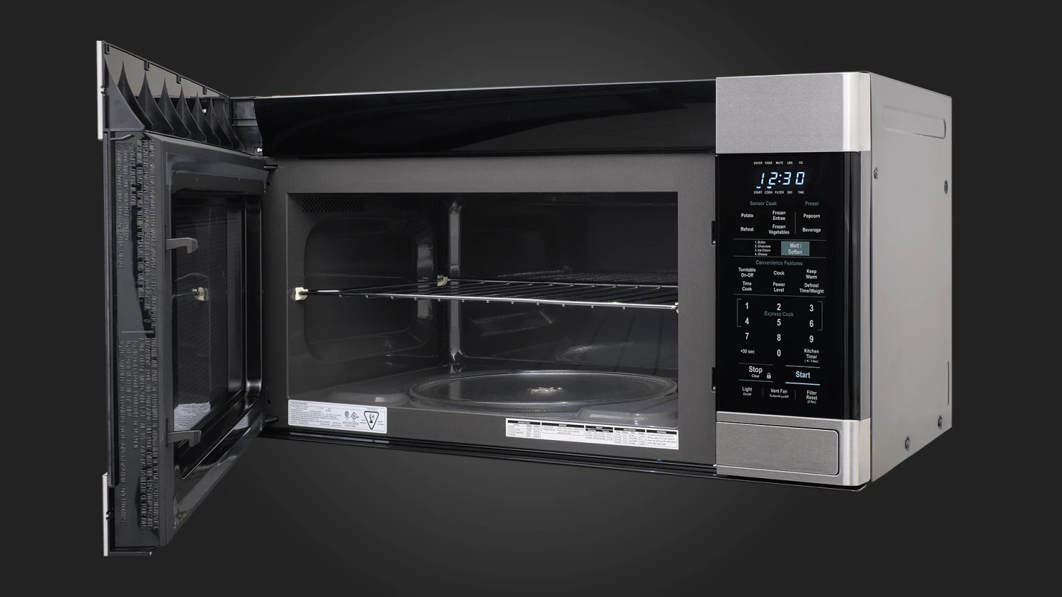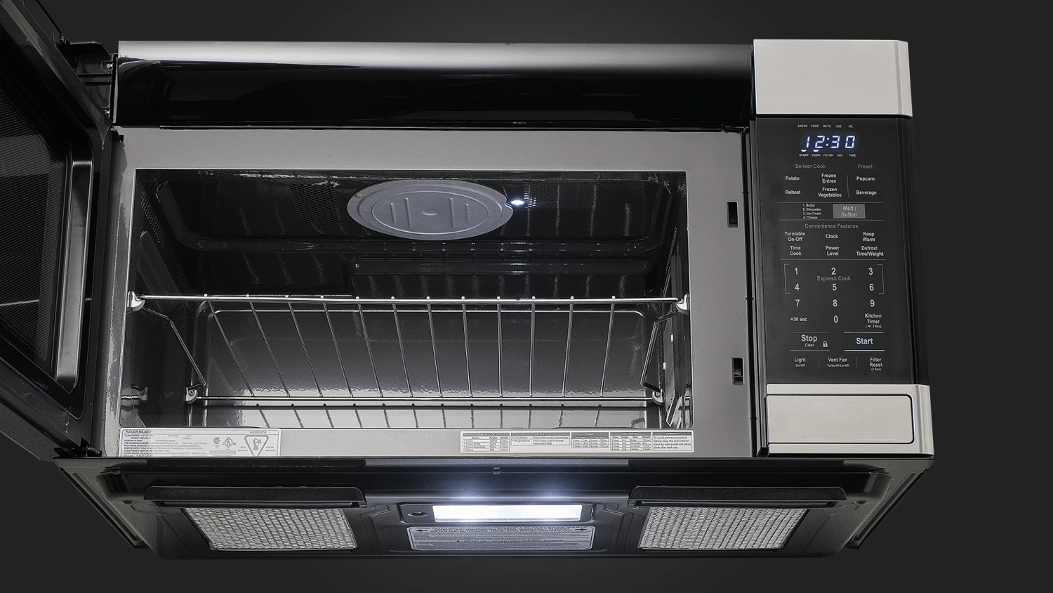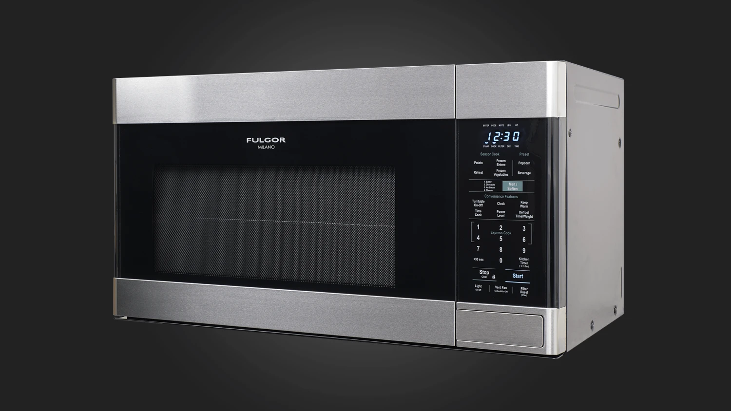 The Fulgor Milano 30-inch over-the-range microwave oven, with its stainless steel aesthetics, is the perfect choice for a modern-style kitchen. It has a cavity size of 1.8 cu.ft, an output power of 950 W and the ventilation airflow speed is of max 450 CFM.