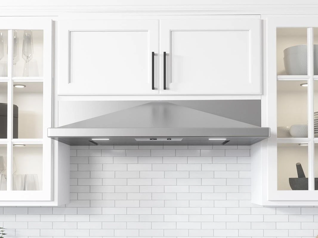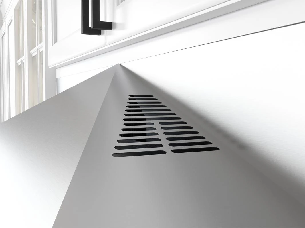 Classic, architectural lines meet at an apex to energize the familiar look of the chimney style under-cabinet hood. This expressive-yet-utilitarian design is upgraded with our Perimeter Aspiration System for the ultimate fusion of style and performance. Dual-level LumiLight LED lights illuminate the surface below while the 12 depth ensures a true fit with popular cabinet styles.